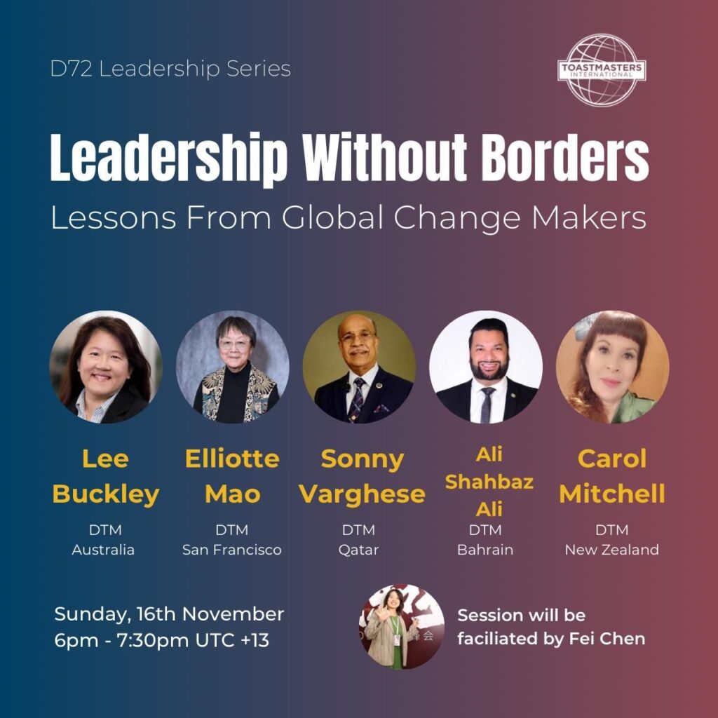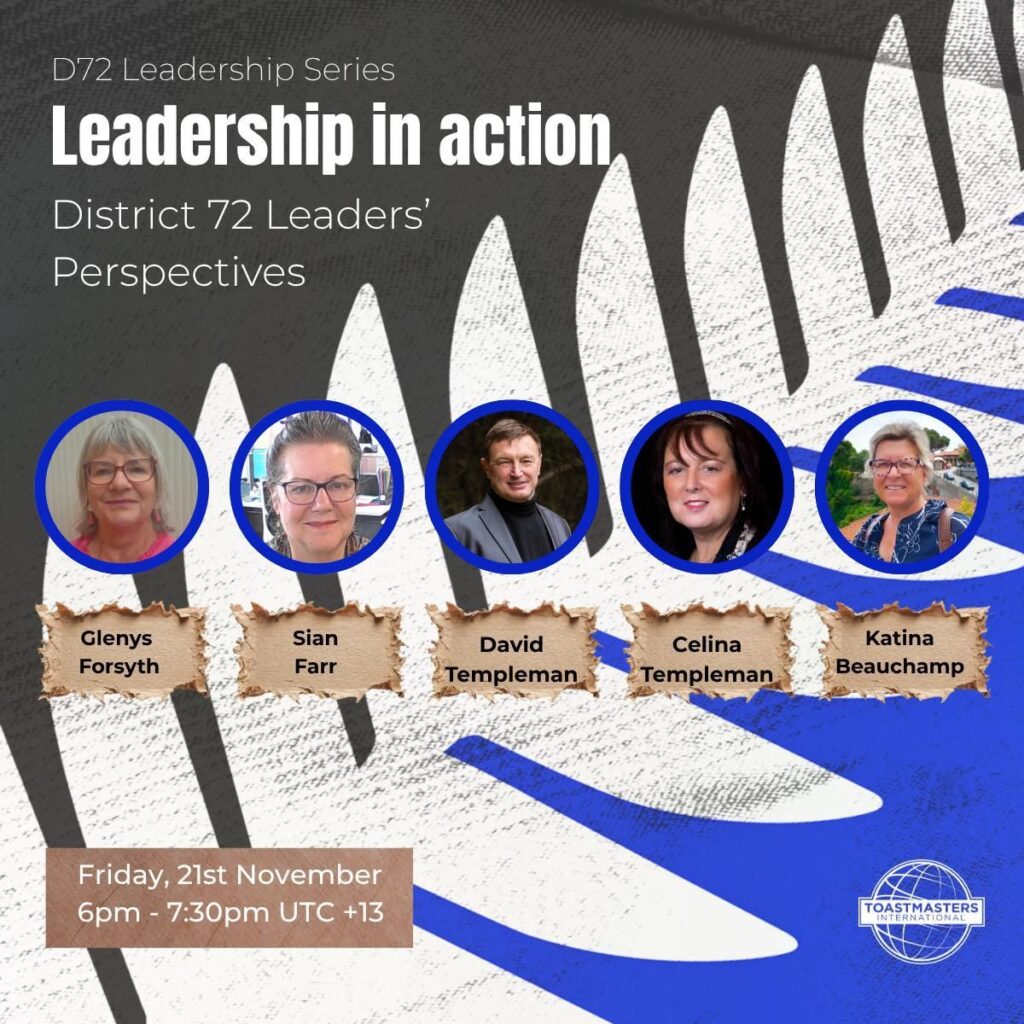 Are you ready to be inspired? Join us for the 2025 District Leadership Series! Throughout November, we will be hosting a number of Zoom workshops focused on developing leadership skills. Whether you are considering taking on a role within Toastmasters or want to level-up in the workplace, these leaders will leave you with personal insights, tips and wisdom!